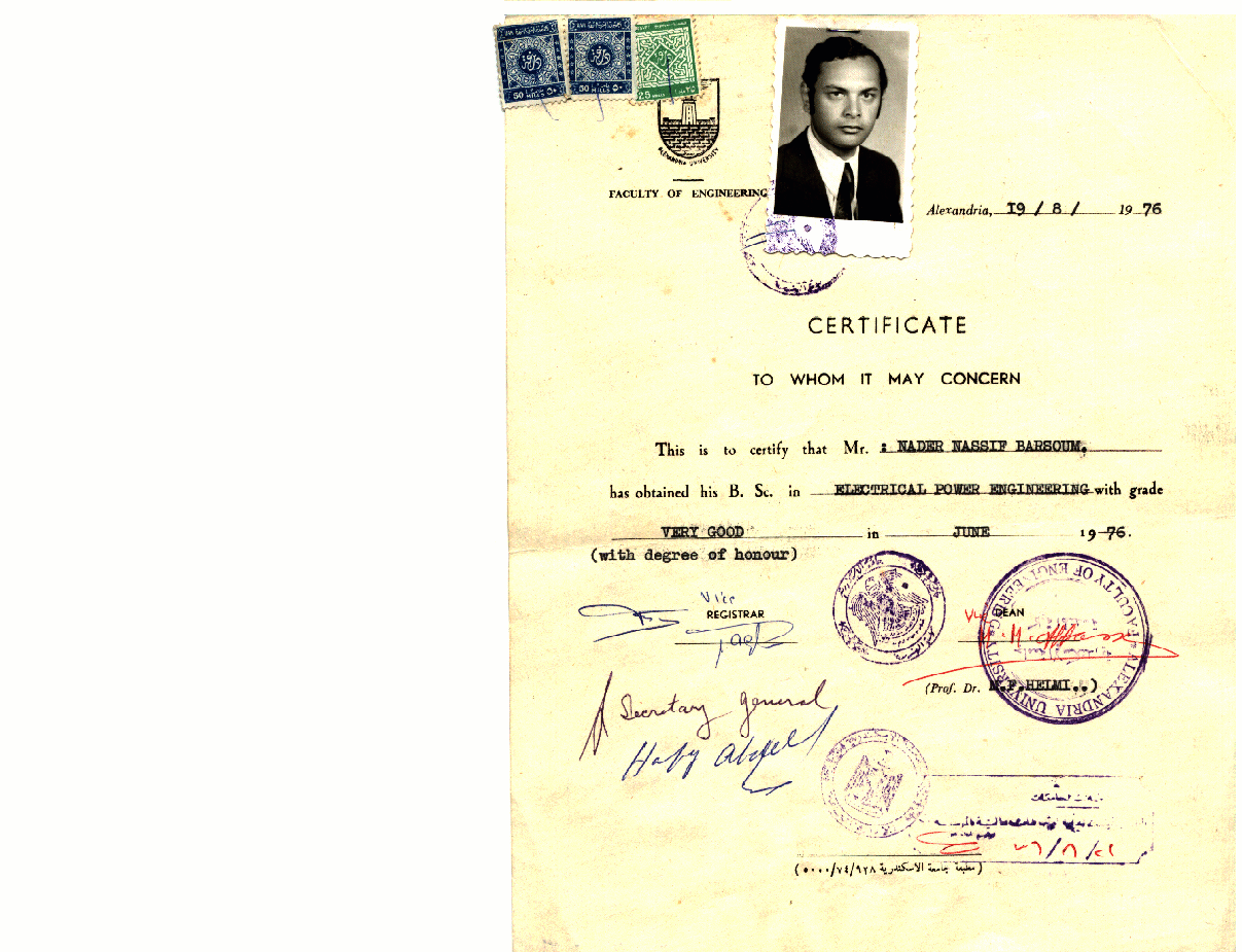3 years study, from September 1965 to May 1968 at Abd Allah El-Nadeem School, located in Mostafa Kamel.